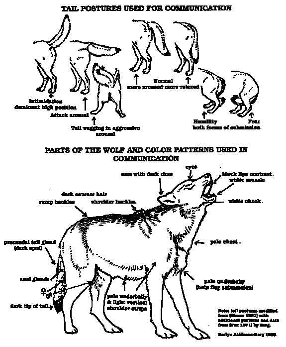 - Queue dréssée, pattes campées : attitudes du dominant.
